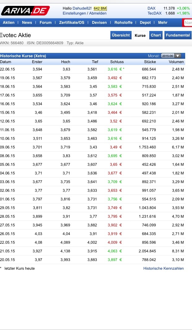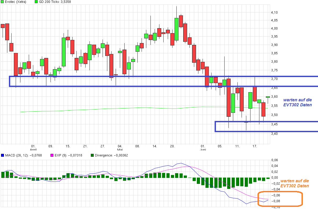 Es ist ja klar, dass der heutige Kurs von Griechenland gemacht wurde. Allerdings, und da gebe ich XL recht, wäre es gar nicht schlecht, wenn vor den EVT302 News der Kurs ganz rein technisch etwas nach oben rückt. Immerhin sind die meisten von uns hier long. Und je höher die Startposition desto besser das Ergebnis (egal in welche Richtung).