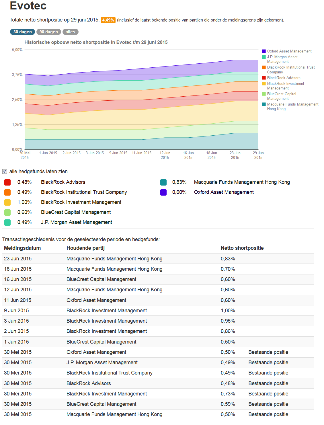 kann natürlich immer sein, daß einer seine Nettoleerposi verkleinert. Allerdings scheint man hier ja wohl seitens der Shorties eine Wette zu fahren, daß EVT302 nicht gute Ergebnisse bringt. Da hat man ( Macquarie , BlueCrest, Oxford Asset oder Blackrock) ja jüngst nochmal aufgestockt. Von daher wäre es etwas seltsam kurz VOR den Daten doch schon wieder einzudecken. Aber da es eh meldepflichtig ist, würde man es eh morgen im Bundesanzeiger sehen ( www.bundesanzeiger.de/ebanzwww/wexsservlet ), ob jemand heute reduziert hat. Ansonsten ist heute aber bei viele Werten der Rückgang nicht besonders groß. Das medial aufgebauschte Griechenland-Mätzchen ist ja auch fundamental unwichtig für so ziemlich alle Werte. Eher gut um im Sommerloch die Klickraten von BILD-Online und SPON hochzujagen, wenn gerade Putin und IS nichts hergeben. Warum sollte man also deswegen sich unnötig wuschig machen lassen? Da haben heute Schnäppchenjäger ordentlich getankt. Und zudem ist morgen der letzte Handelstag im 1.Hj.15. Da wollen zu dem Stichtag die Fondsmanager auch möglichst mit einer guten Performance glänzen und daher nicht sich selber auf den letzten Metern die Kurse versauen ;)