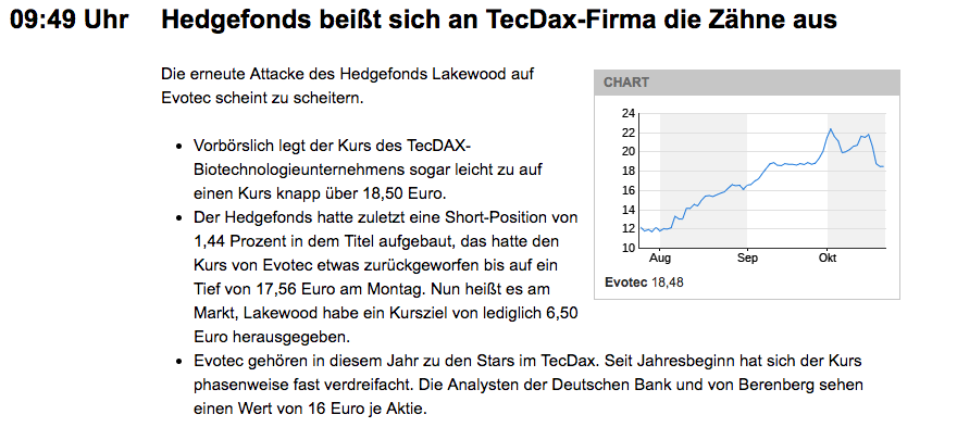 "Nun heißt es am Markt, Lakewood habe ein Kursziel von lediglich 6,50 Euro herausgegeben."