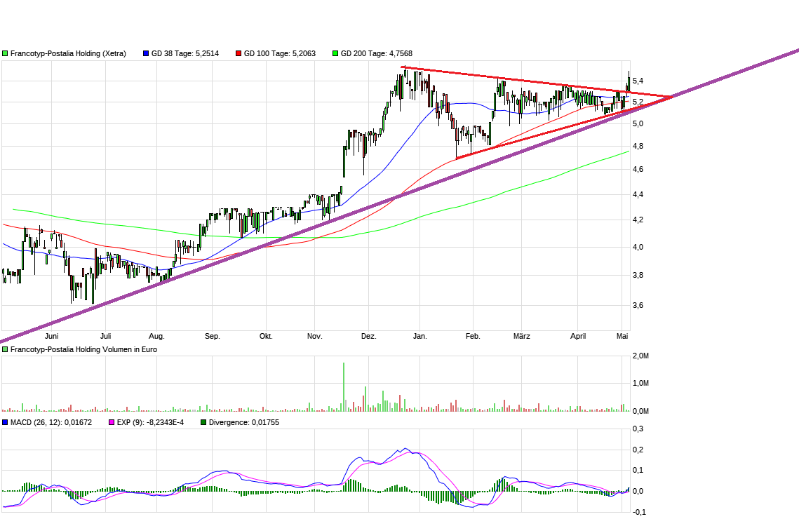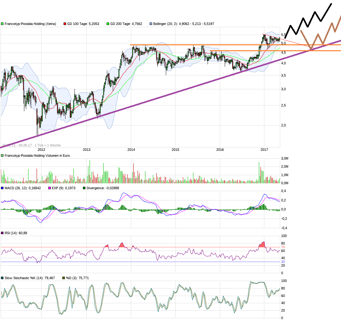 Schönes Wochenende! Hoffen wir auf einen Macron-Sieg! Dann sollte die Aktie nächste Woche durchstarten. Ich halte eine schnelle Rallye bis 6,5 € schon in den nächsten 4 Wochen für gut möglich, zumal ja auch zwei Finantermine in dem Zeitraum anstehen. Fundamentale Bewertung und Psychologie und damit eben auch Chart seh ich ohnehin bullish.