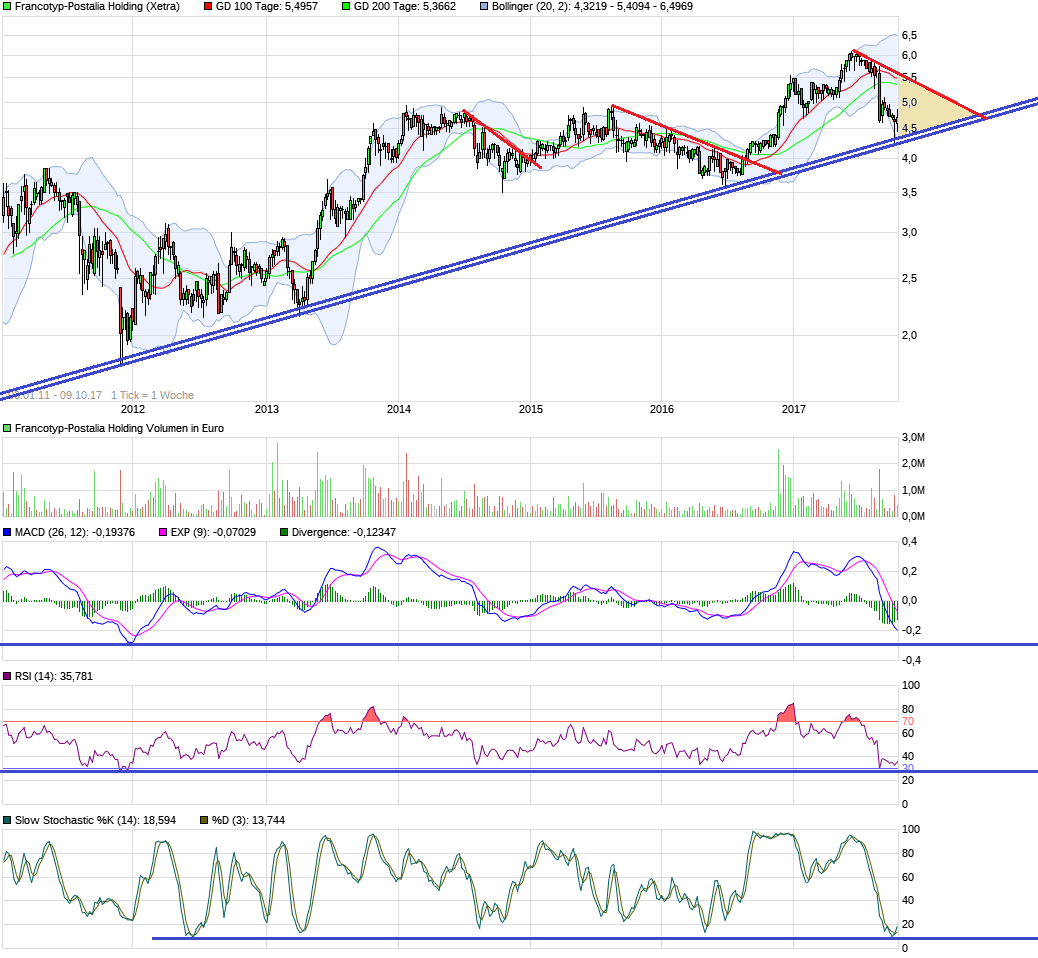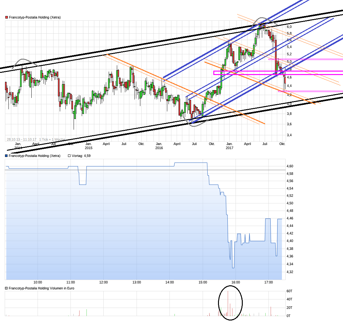Berlin, 9. Oktober 2017. Der Vorstand der Francotyp-Postalia Holding AG hat heute mit Zustimmung des Aufsichtsrats beschlossen, von der auf der ordentlichen Hauptversammlung vom 11. Juni 2015 beschlossenen Ermächtigung zum Erwerb eigener Aktien gemäß § 71 Abs. 1 Nr. 8 AktG Gebrauch zu machen und voraussichtlich im Zeitraum vom 12. Oktober 2017 bis zum 12. Januar 2018 bis zu 475.000 Aktien (dies entspricht maximal bis zu 2,91 % des Grundkapitals der Gesellschaft) zu erwerben, wobei der Rückkauf der bis zu 475.000 Aktien auf einen Gesamtkaufpreis von maximal EUR 3.000.000 begrenzt ist.