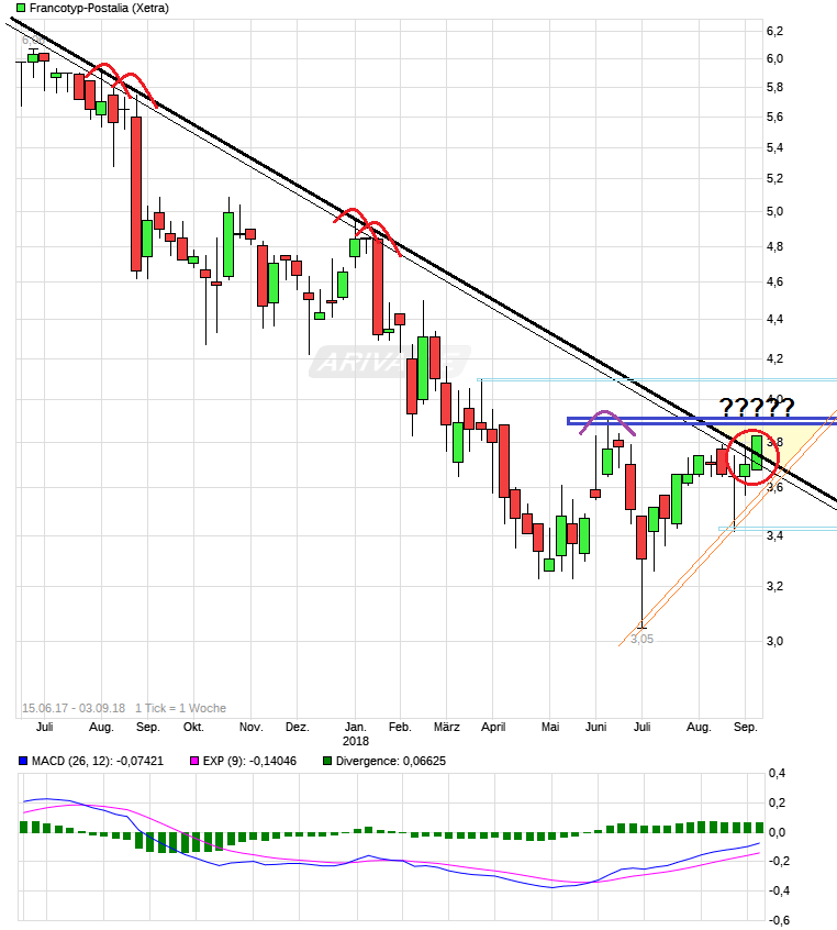 c) Du nimmst an, dass der prozentual höhere Marktanteil auf weniger Maschinen entfällt. Da kann man sich aber die Umsätze über die letzten Jahre und Quartale anschauen, die nach Produkverkäufen (also Maschinen, einmalig) und wiederkehrenden Umsätzen (Verbrauchsmaterial, Porto, Mieteinnahmen, etc.) aufgegliedert sind. Dort findest Du Deine Antwort, ob die Zahl der Maschinen im Markt rückläufig ist oder nicht. Ich kann das nicht erkennen.