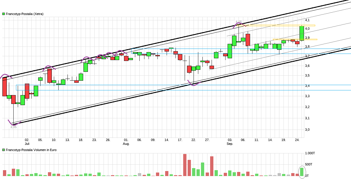Die letzten 2 Tage kauft jemand 100k aus dem Ask zwischen 4,0 und 4,1 €, und heute reichen 10k, um den Kurs trotzdem wieder auf 3,9 € zu bringen. Manchmal will mir das Verhalte der Börsianer nicht in den Kopf.