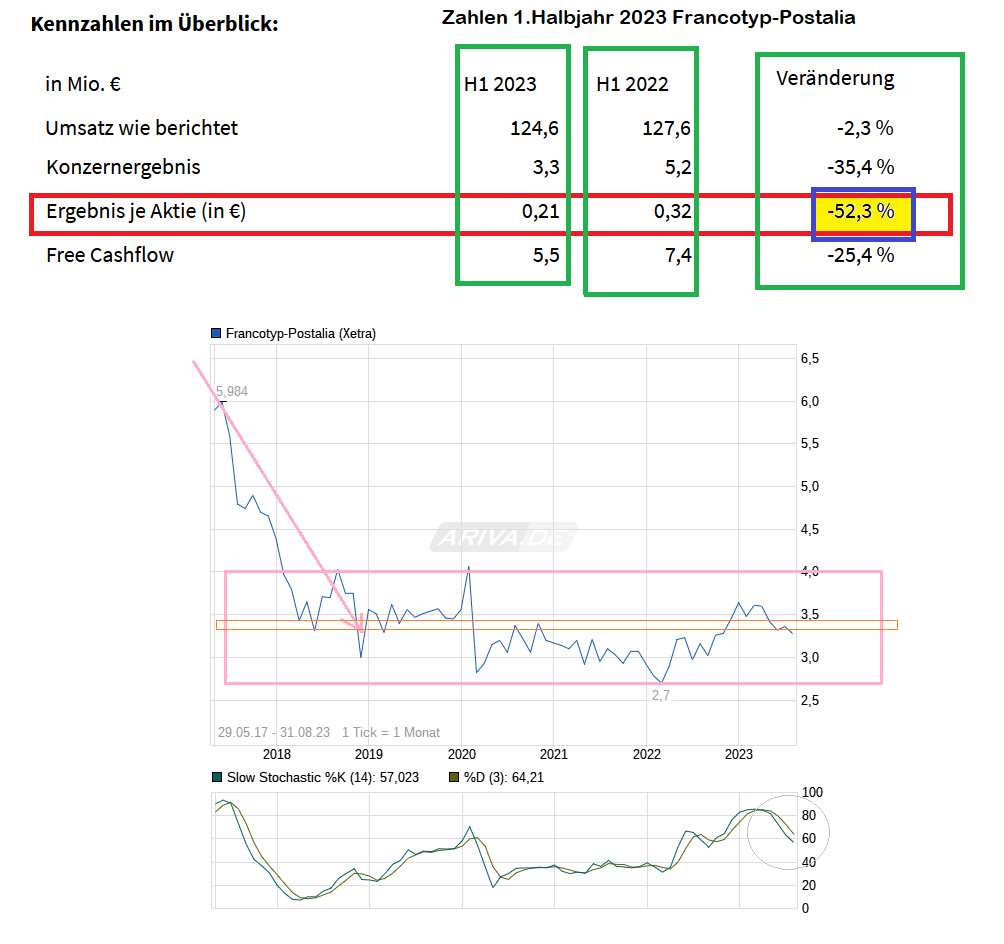 Francotyp-Postalia: Sinkendes Zins- und Finanzergebnis belastet Gewinn -23.11.2023 www.4investors.de/nachrichten/...?sektion=stock&ID=173613 "...Francotyp-Postalia Holding meldet einen Umsatzrückgang von 3,3 Prozent auf 182,5 Millionen Euro für die ersten neun Monate des Jahres 2023 bekannt, verglichen mit 188,7 Millionen Euro im Vorjahreszeitraum. .....Unter dem Strich sinkt der Gewinn des Unternehmens allerdings spürbarer. Für die ersten neun Monate 2023 meldet Francotyp-Postalia einen Überschuss von 4,5 Millionen Euro nach 6,1 Millionen Euro zuvor. Dies entspricht je Francotyp-Postalia Aktie einem Gewinnrückgang von 0,38 Euro auf 0,29 Euro. Begründet wird dies vonseiten der Gesellschaft mit einem rückläufigen Zins- und Finanzergebnis..."