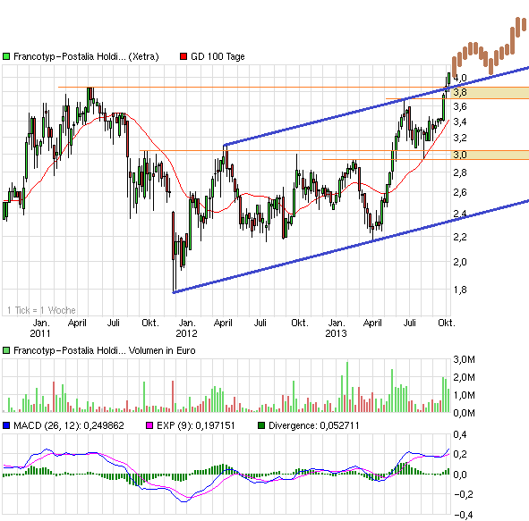 Zum Halbjahr setzte FP 85 Millionen Euro um und erzielte ein Ergebnis vor Zinsen und Steuern (EBIT) von 5,9 Millionen Euro. Im Gesamtjahr rechnen die Brandenburger mit neun Millionen EBIT. Es ist davon auszugehen, dass FP mit der Vorlage der 9-Monats-Zahlen dem Jahresziel schon sehr nahekommt. Die Aktie dürfte daher mit dem 9-Monats-Bericht Anfang November seine Aufwärtsbewegung noch einmal beschleunigen. Mit einem 2014er-KGV von 9 und einer Dividendenrendite von rund vier Prozent ist der Wert ein klarer Kauf.