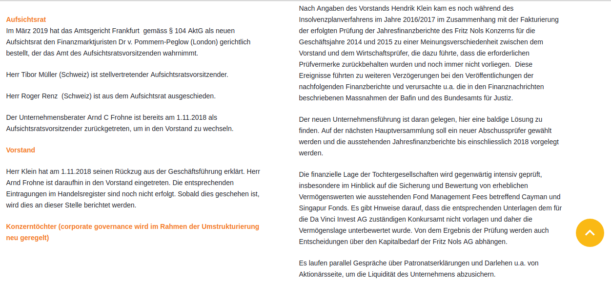 Frankfurt (aktiencheck.de AG) - In dem Insolvenzverfahren über das Vermögen der Fritz Nols Global Equity Services AG (Profil) teilen die beiden Vorstände Hendrik Klein und Frank Scheunert mit, dass das Verfahren nach Bestätigung des Insolvenzplans gem. § 258 Abs. 1 InsO aufgehoben wurde. Die Aktie und die AG sind damit frei von allen Lasten. Über das weitere Aufleben des Börsenmantels wird der Vorstand zeitnah informieren.