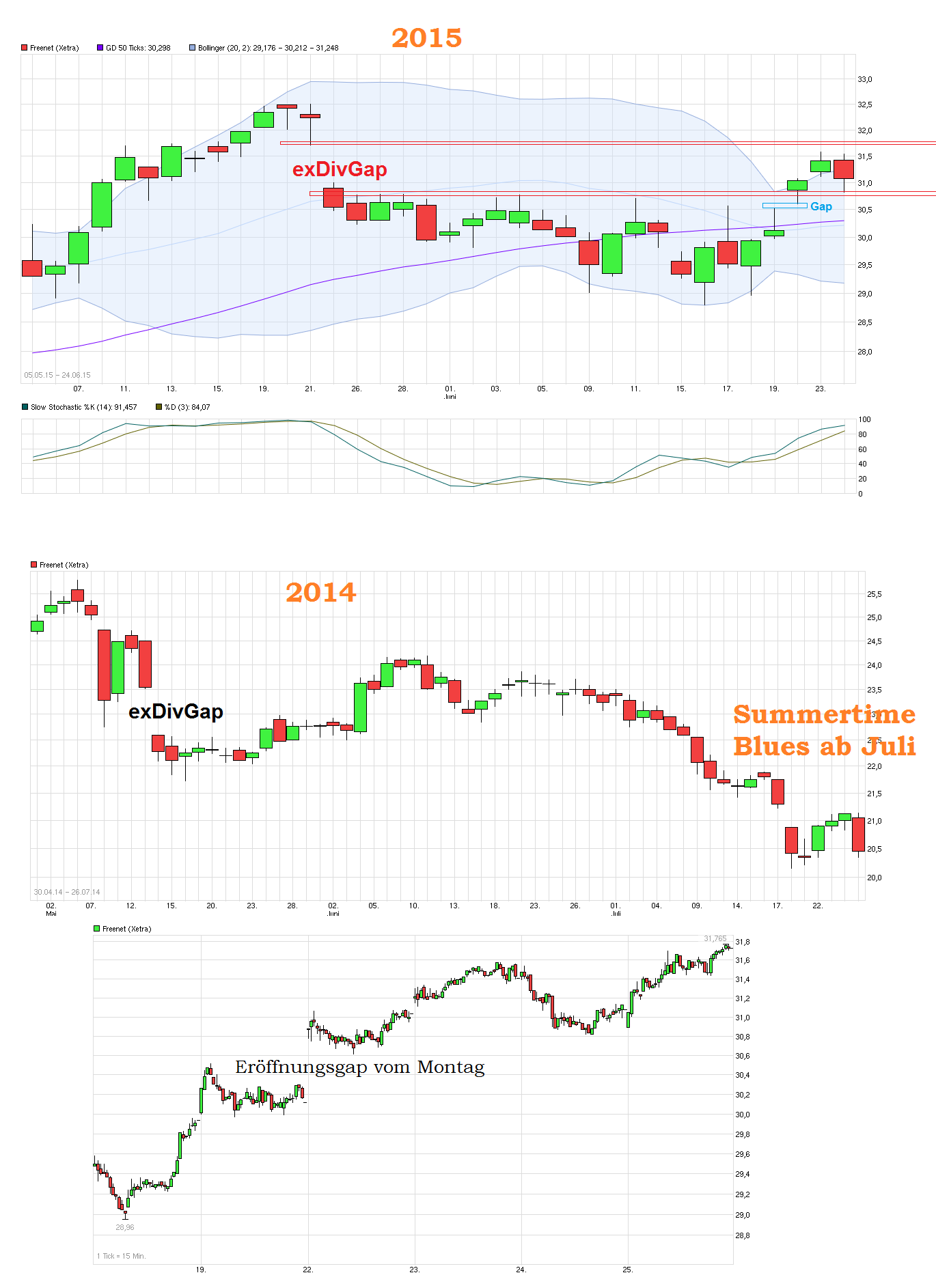 - Erfahrungsgemäß baut mindestens ein institutioneller Investor vor den Sommerferien ab, um sich woanders zu engagieren (man muss ja zeigen, das man für den Kunden aktiv ist für die Gebühren) und um kein Kursrisiko offen zu haben, wenn die Abteilung in der Karibik kokst sich erholt.