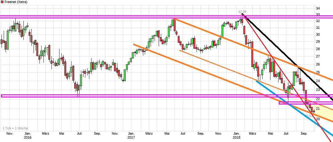 Also solange Sunrise weiter halbwegs auf dem gegenwärtigen Kursniveau bleibt und Ceconomy auch nicht mehr viel abgibt, sehe ich eigentlich beim aktuellen Kurs aus fundamentaler Sicht keinen Grund warum man deutlich weiter fallen sollte, solange man weiter seine Jahresprognose erfüllt. Erwarte eigentlich, daß dies auch mit den Q.3 Zahlen so weiter gesagt wird. Aus charttechnischer Sicht kann ich durchaus auch tiefere Kurse noch ableiten. Ist halt die Frage, was gegenwärtig an Angstfaktor bzgl. 5G schon hinreichend eingearbeitet ist und was noch drohen könnte, wenn man im November doch gegen die Provider ohne Netz entscheidet. Das ist eben jetzt stark vom Sentiment gegenwärtig getrieben bei den Provideraktien und nur schwer abzusehen wieweit die Übertreibung nach unten gehen wird. Besonders wenn Leerverkäufer noch mit am Rad drehen. Man hat ja gesehen wohin das führte im Herbst 2014. Normalerweise würde ich aus saisonalen Gründen jetzt wieder anfangen Telkos wie FNT zu kaufen, da die normalerweise von Herbst bis zur HV im nächsten Jahr zulegen und die Divis dann auch wieder mehr in den Fokus rücken. Angesichts der Unsicherheit bzgl. 5G, stelle ich das aber wohl erstmal noch zurück und warte was die Fakten bringen.
