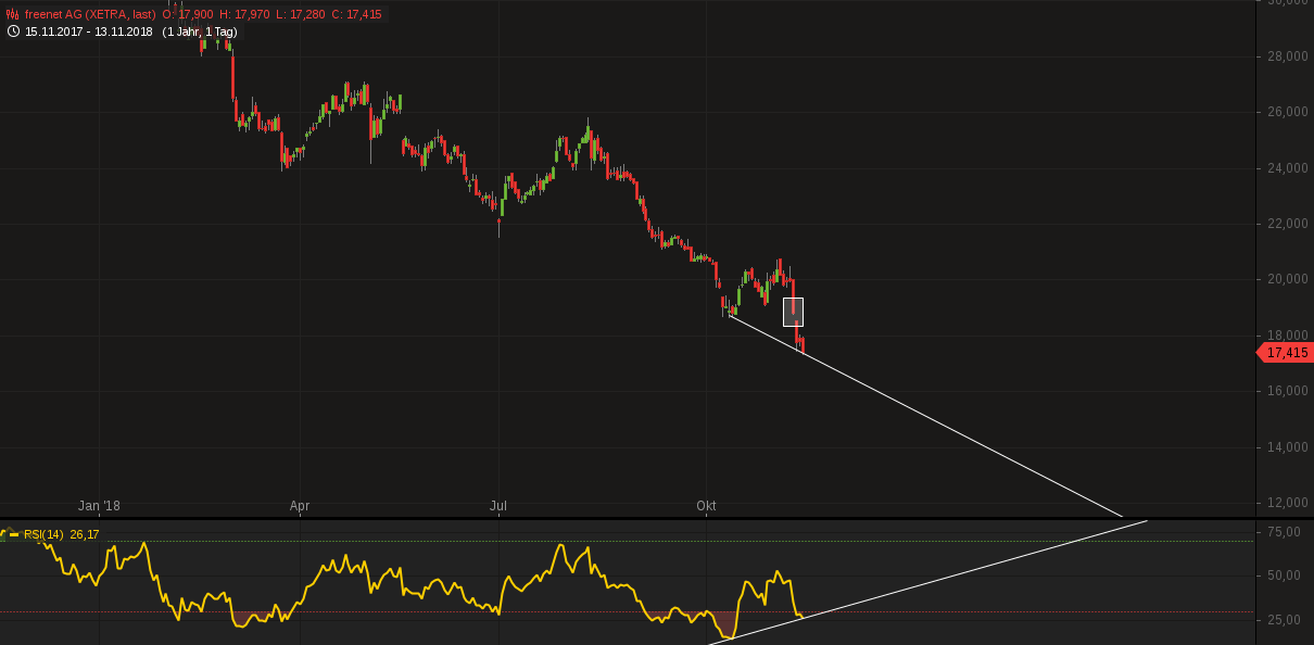 Bei Godmode bin ich immer Vorsichtig, wenn Alexander Paulus oder der André Rain was schreiben. Bei Letzterem warte ich z.B. noch immer auf die 210€ für Freenet ;) (siehe unten). Da wird zu oft zuviel Bewegung nach unten oder oben in viel zu kurzer Zeit gesehen, wie jetzt wieder mit einer Aussage :" In den nächsten Tagen ist mit weiteren Abgaben sogar in Richtung 13,60 EUR zu rechnen." 13,60? Also das wären 4€ in nur wenigen Tagen nochmal fallen und DiivRenditen von 11-12%? Da müßte aber irgendwas extremes wohl passieren, z.B. Sunrise-Kurs kollabiert oder Gesamtmarkt bricht weiter weit ein. Selbst wenn die BNetzA weiter bei der Haltung bleibt wie Anfang September, würde das kaum so einen Rutsch rechtfertigen, da dies ohnehin das klar wahrscheinlichste Szenario ist und daher zu weite Teilen eingepreist sein sollte.