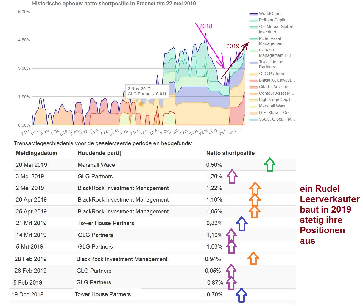 Fakt ist jedenfalls, daß auch Vilanek inzwischen wohl bewußt ist, daß die Verschuldung bei Freenet sehr hoch ist (was durch IFRS16 ja eher noch höher wird) und man daher hoffte Sunrise zu guten Kursen zu verkaufen. Leider ist der Sunrise-Kurs seit Bekanntgabe der Übernahme von UPC brutal abgestürzt und somit erstmal die Chance auf unbestimmte Zeit vertan für Freenet die Schulden zu senken durch Abbau der Sunrise-Beteiligung. Oder man müßte auf sehr tiefen Kursen jetzt verkaufen, die unter dem damaligen Kaufpreis liegen.