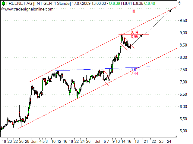 Rechne ich den DSL-Verkauf dazu und nehme konservativ 250 Mio € Verkaufspreis für Strato an, sowie einen freien Cashflow von 100 Mio € im 2.Halbjahr 2009, dann ergibt sich bereits Ende 2009 ein Wert von nur noch 800 Mio € Nettoverbindlichkeiten. Ab 2010 rechne ich zudem mit einem Ebitda (durch wegfallende Mitarbeiterzahlungen sowie Synergieeffekte) von 475 Mio €.