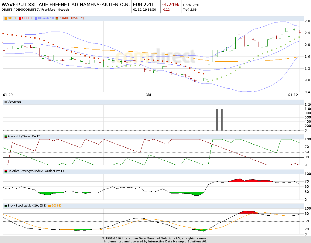 Leider bei 2,52 am Dienstag keine Kasse gemacht sondern auf Trendfolge spekuliert. Das wäre ansonsten ein schöner kleiner Ansatz eines Verlustausgleiches gewesen. Jetzt steht der PUT gerade bei 2,425 €.