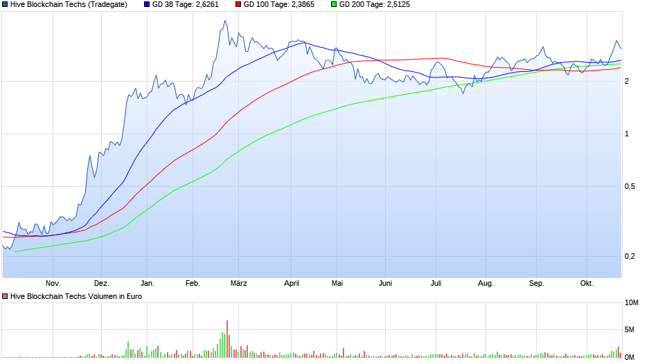 Denn der Anstieg vom HIVE-Kurs blieb zur Hälfte erhalten...