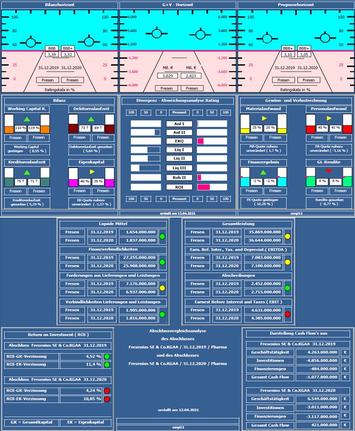 Um die Entwicklung aufzuzeigen, wurde der Jahresabschluss 2019 mit dem Jahresabschluss 2020 verglichen ( vor Corona und 10 Monate in Corona ). Häufiger wird angemerkt, warum Auswertungen mit alten Daten präsentiert werden. Bei den von mir erstellten Kurzanalysen handelt es sich um ein längerfristiges Projekt bei dem zunächst vorpandemische, danach dann inpandemische und zum Schluß nachpandemische Zeiträume dargestellt werden, um den Einfluß von Corona auf Unternehmen/Branchen zu dokumentieren.