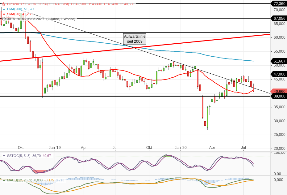 Du ankerst an deinem Einstiegskurs, der bei 45€ liegt. Dir ist anscheinend absolut egal wie es bei Fresenius läuft oder was die machen, Hauptsache die Aktie ist nicht in deinem Depot im Minus. Wenn du so investierst, dann wirst du deinen Kindern ein Depot voll mit Verliereraktien vererben. Wenn ich mir deine anderen Posts so ansehe, dann scheint Fresenius auch eine der besten Aktien in deinem Depot zu sein neben Perlen wie: Lufthansa, BASF, Freenet... Neben Lufthansa und Freenet ist Fresenius sogar ein echtes Dividendenschwergewicht.