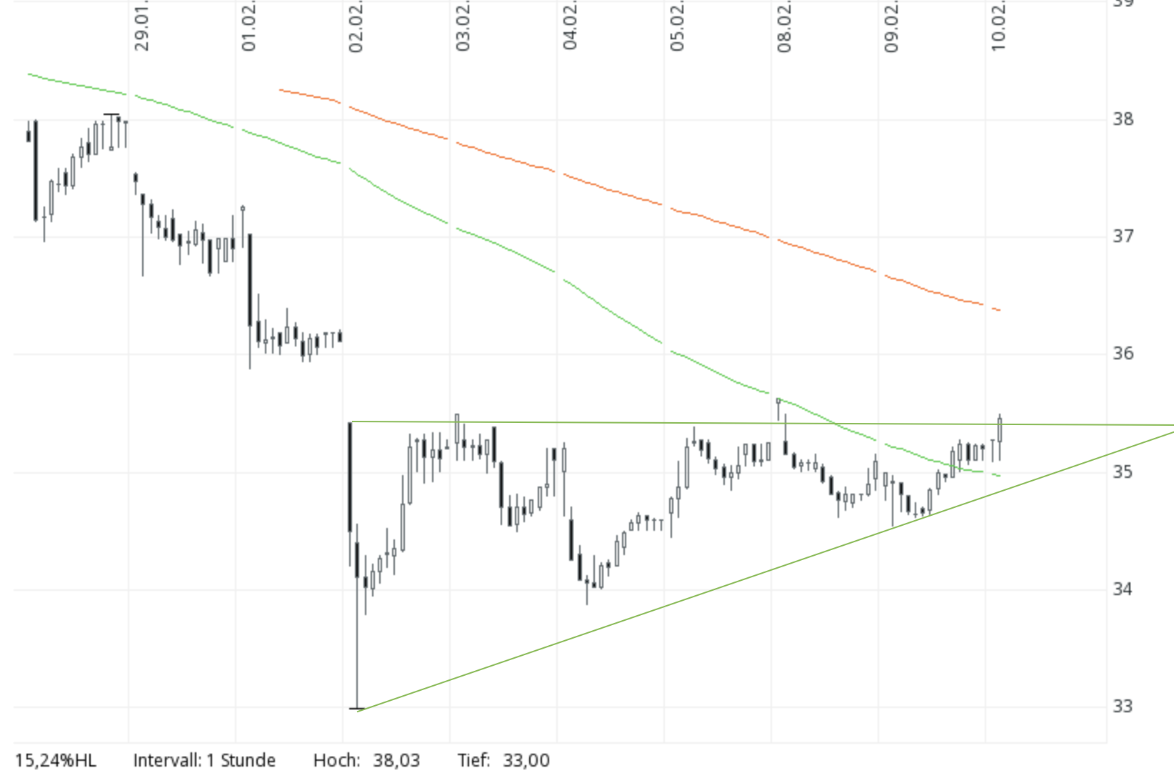 Ich stufe die Aktie hoch. Aktuelle Konsolidierung nutzen Profis für Käufe. Ich stufe die Aktie auf Sicht von 3 Monate auf € 52. Auf genanntem Niveau ist Aktien weiterhin günstig bewertet.