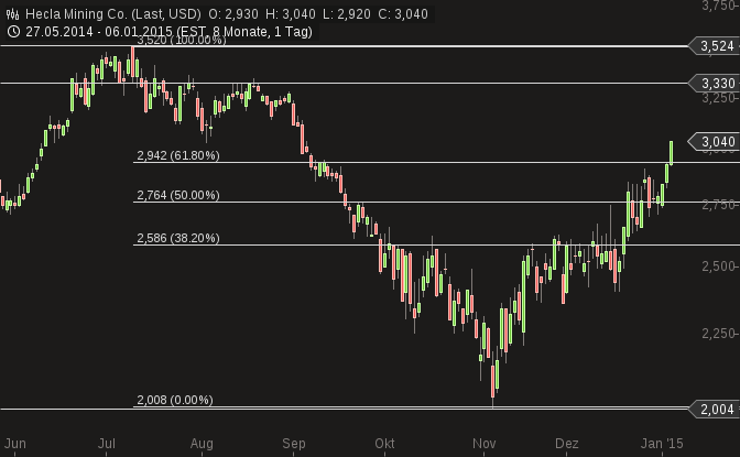 Die physischen Bestände der Gold-ETFs seien im Jahr 2013 um gut 30% zurückgegangen, gefolgt von weiteren 8% im Jahr 2014. Damit würden sie sich nun auf dem niedrigsten Niveau seit 2009 bewegen. Während bei dem gelben Metall damit Anzeichen von Schwäche deutlich würden, so Taki T. weiter, zeige sich Silber von seiner starken Seite. Trotz der angespannten Preissituation seien die Bestände der Silber-ETFs sowohl in 2013 als auch in 2014 leicht gestiegen.