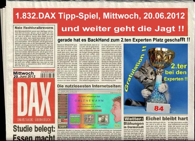 1.832.DAX Tipp-Spiel, Mittwoch, 20.06.2012,17.45 Uhr, DAX ....???