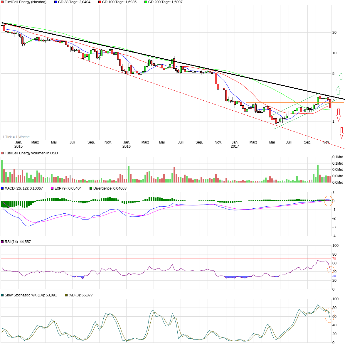 Wenn Du mein "Bildchen gemalt" richtig lesen könntest, würdest Du alleine bei meiner Beschreibung meine persönliche Skepsis herauslesen. Nichts desto trotz ist der Abwärtskanal aus 2014 und das Abprallen an der 200 Tage Linie (nicht eingezeichnet, könnnte einem auffallen) interessant.