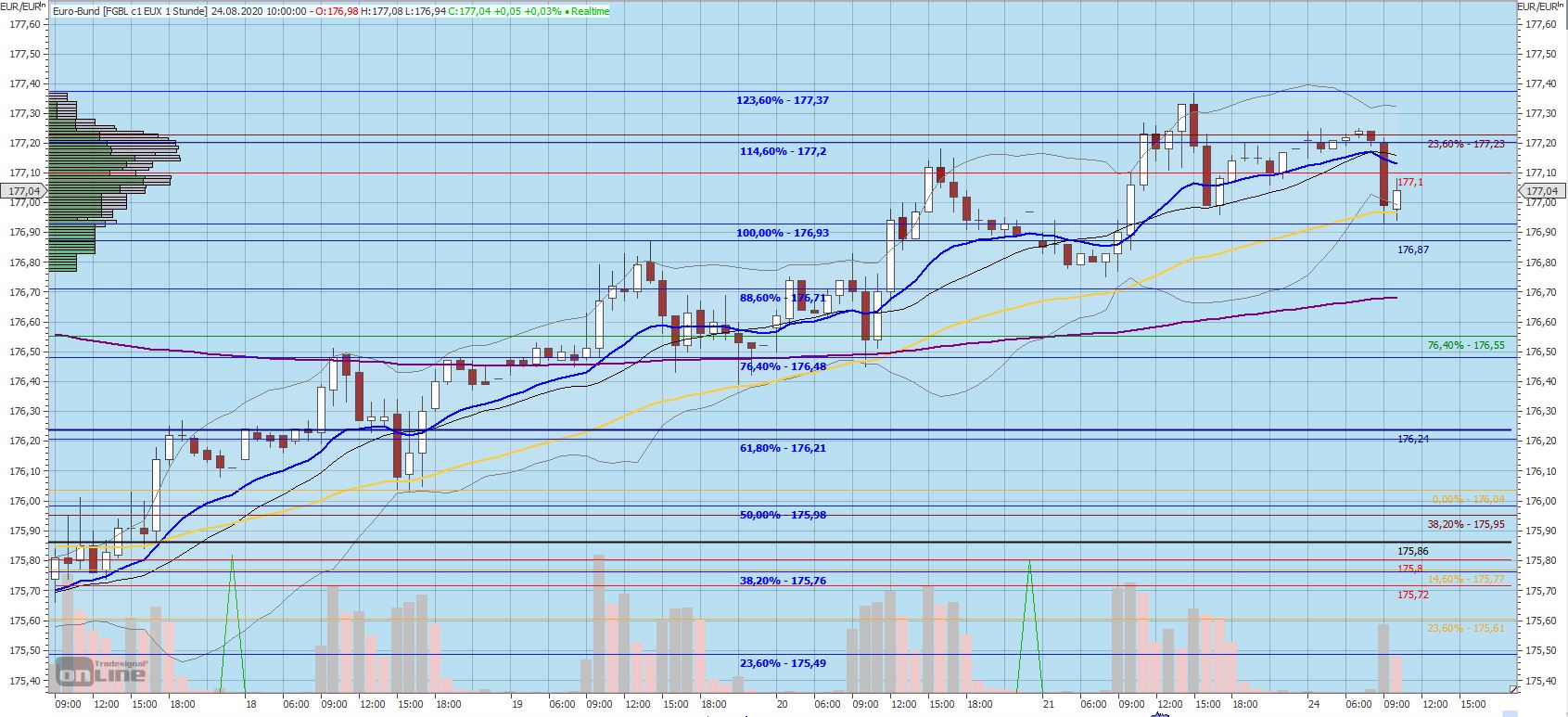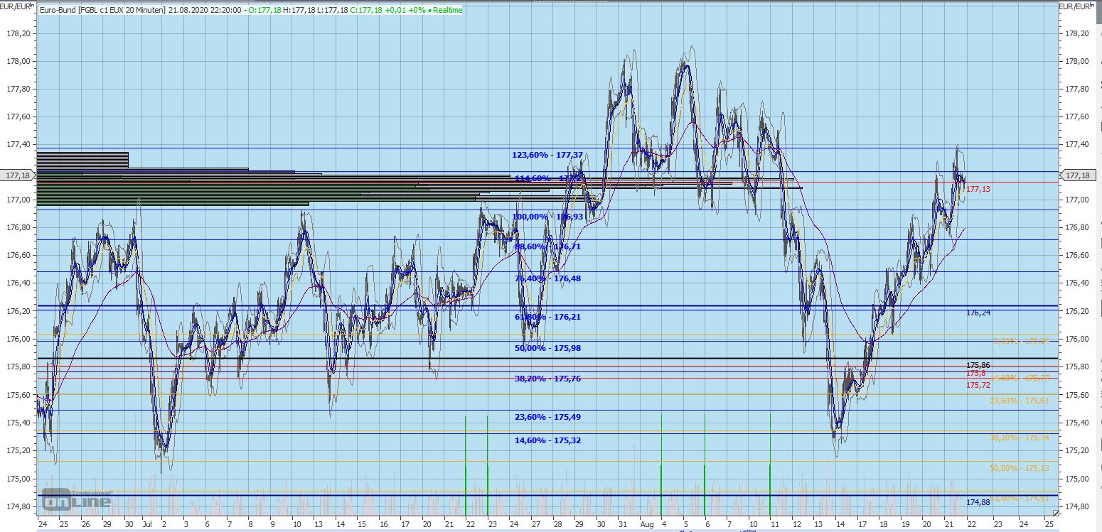 im Hintergrund übergeordnet der Chart des F-DAX auf 6h Basis.