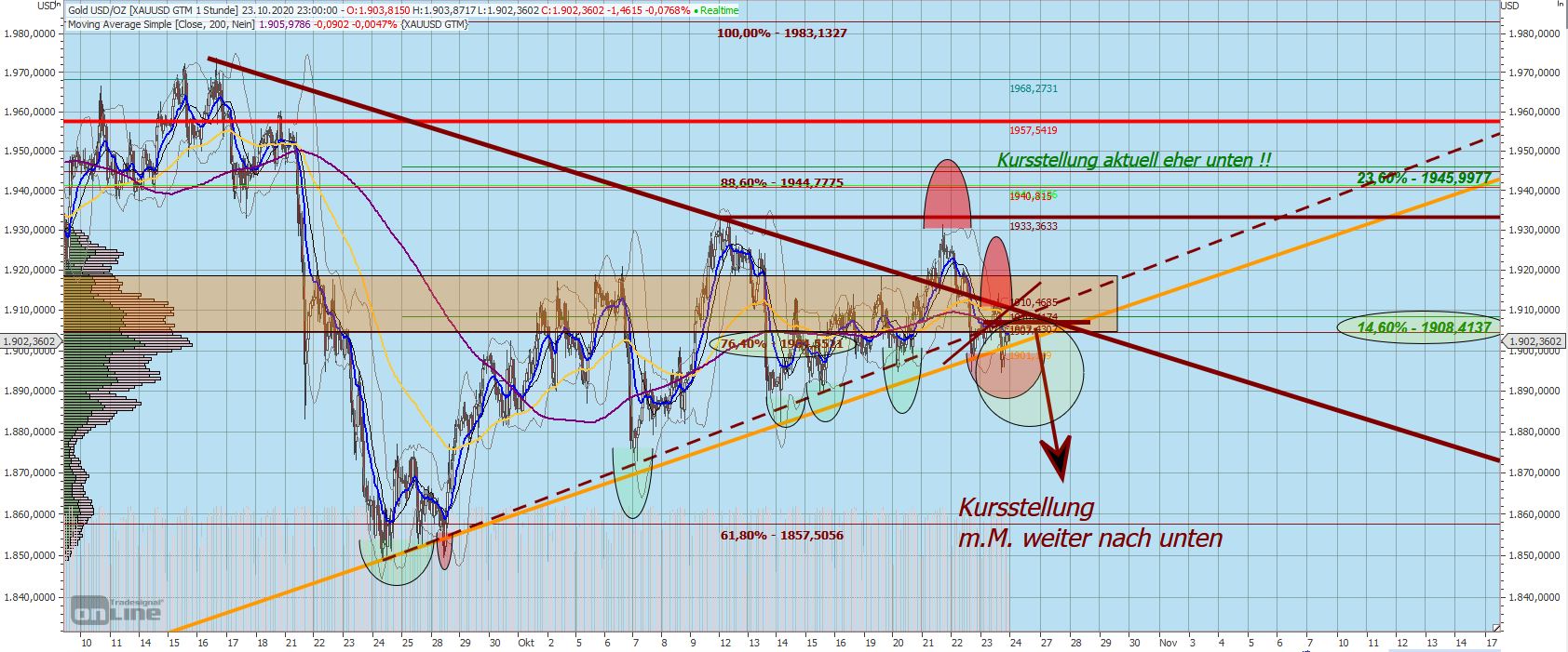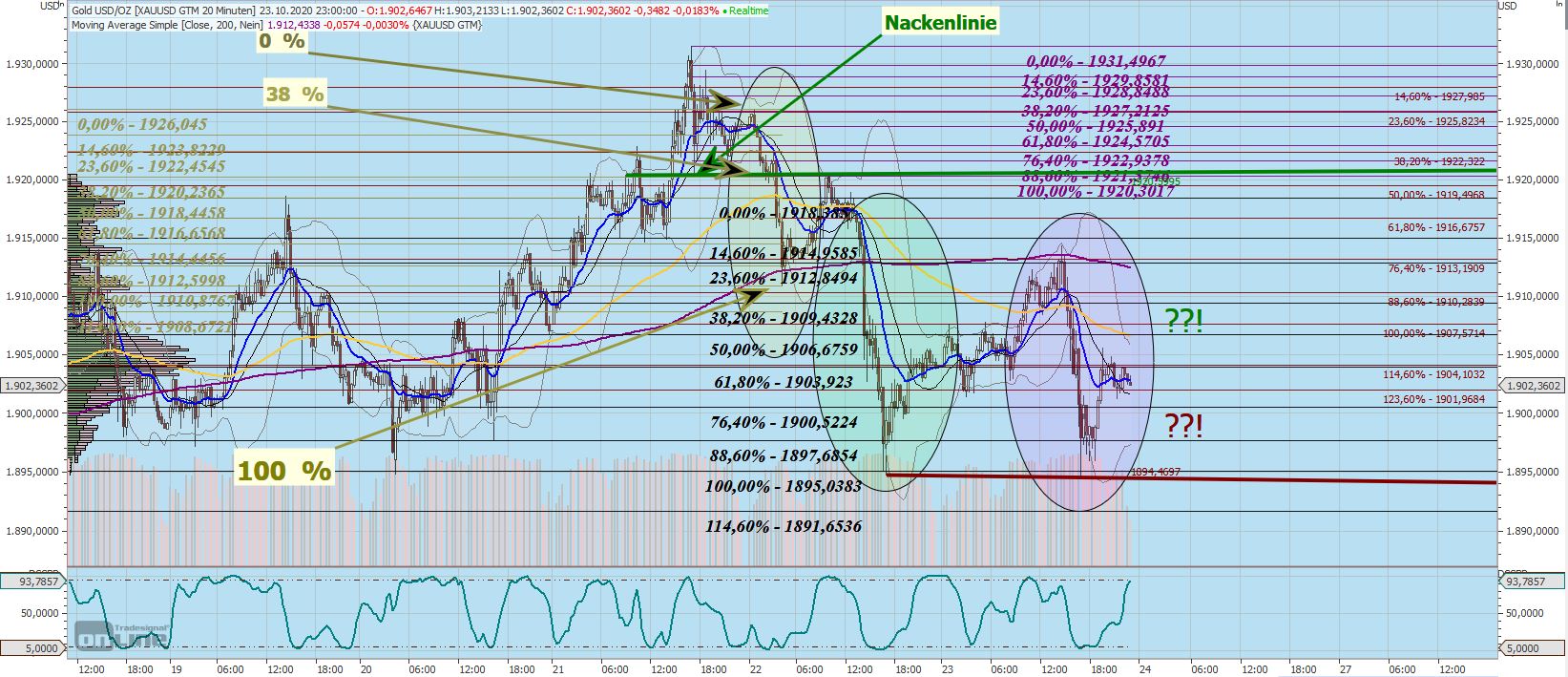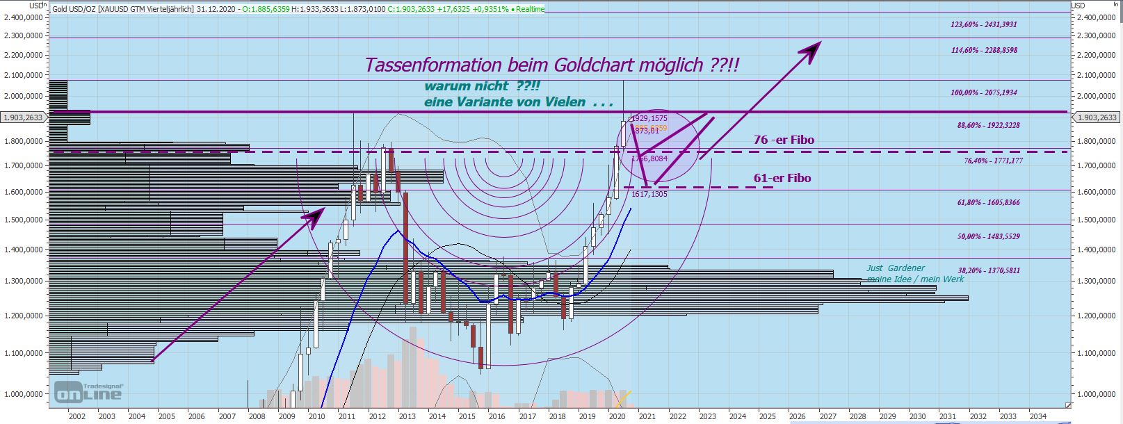 Auch wenn die Meisten von uns nach oben wollen, gilt es für Viele, sich unten nochmals gut einzudecken. Insbesondere bei 'Phantasie' (?) - Zielen von 3000 USD wollen etliche Banken und große Anleger, Fonds etc. sich unten eindecken bzw. UNTEN noch maximale Mengen an physischem Material einsammeln. Niemand hat in Stein gemeißelt, 1900 wäre die magische Schwelle, der Preis, den das Edelmetall wert wäre. Er, der Preis, fühlt sich halt eben hier wohl ;-))