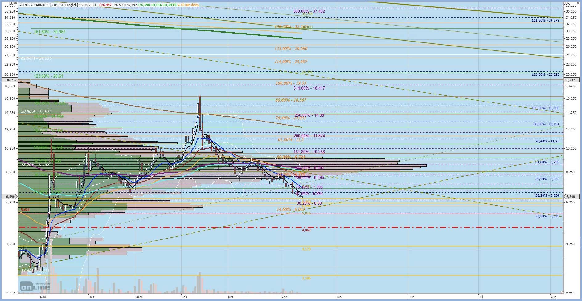 solange hier kein nachhaltiger Gewinn generiert wird, spielen die bigPlayer mit dem Kurs PingPong: nicht nur nach oben: auch nach unten!! Das gilt es entweder auszuhalten oder eben damit umzugehen durch taktische Zu-& Verkäufe. Und damit meine ich nicht das klassische, dumme 'ins fallende Messer greifen' & panikartige Verkaufen kurz vor dem Up, sondern eben gezieltes Investieren.