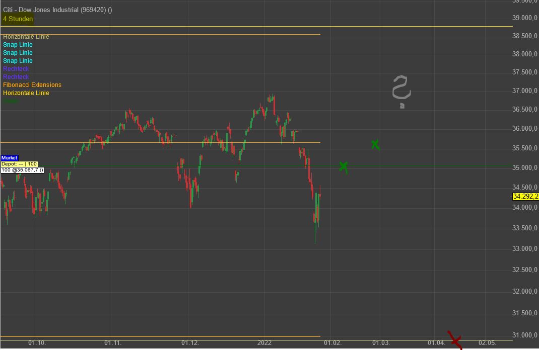 Wir prallen also nach Süden ab / die Auffang-Kurse & Linien sind allseits bekannt & auch auf o.g. Chart dann zu sehen.
