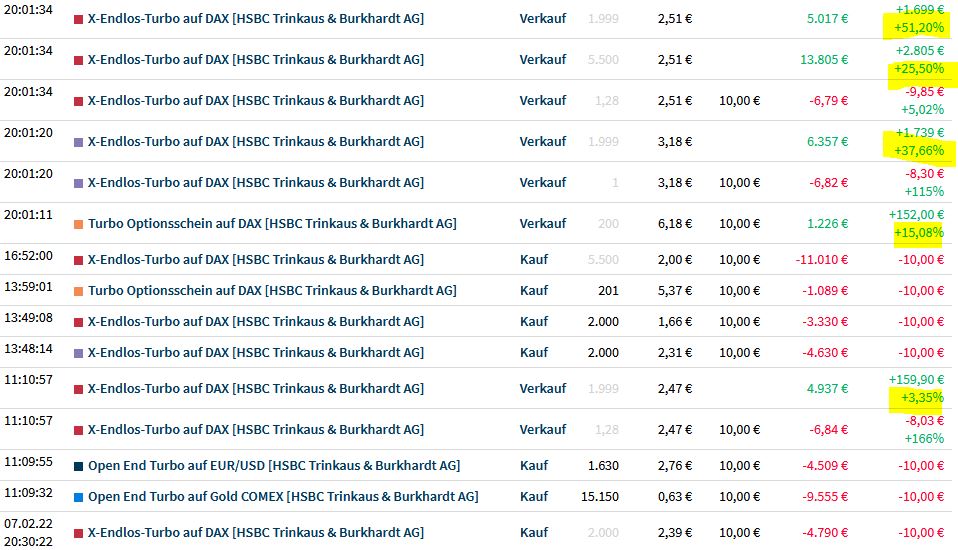 & dann aber auch mal die Gewinne realisieren, damit Du noch was hast, vom Tag ;-))