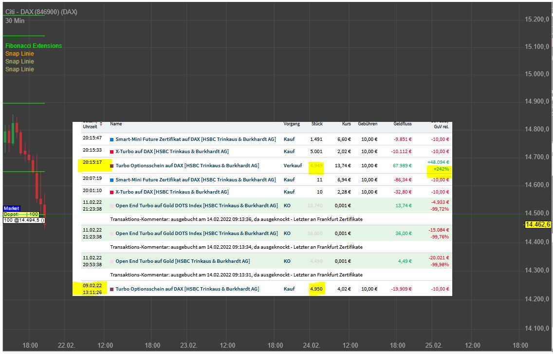 die eingezeichnete FiBo-Marken werden regelmäßig von/ bei der Kursstellung respektiert !!