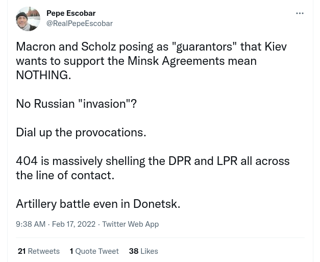 Allein die jetzigen neuen Provokationen des Westens, Truppen in Bulgarien, Rumänien, Nordmatzedonien zu stationieren, spricht für sich. Das neue Selbstbewußtsein der Ukrainer, das ihnen vom Westen, eingeredet wurde, wird diese dazu ermutigen, dem Minsker Abkommen nicht nachzukommen.