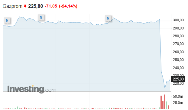 Gazprom zahlt für das vergangene Jahr überraschend keine Dividende. "Die Aktionäre haben entschieden, dass es in der gegenwärtigen Situation nicht sinnvoll ist, Dividenden auf das Ergebnis von 2021 auszuzahlen", so Gazprom-Vizechef Famil Sadygow. /