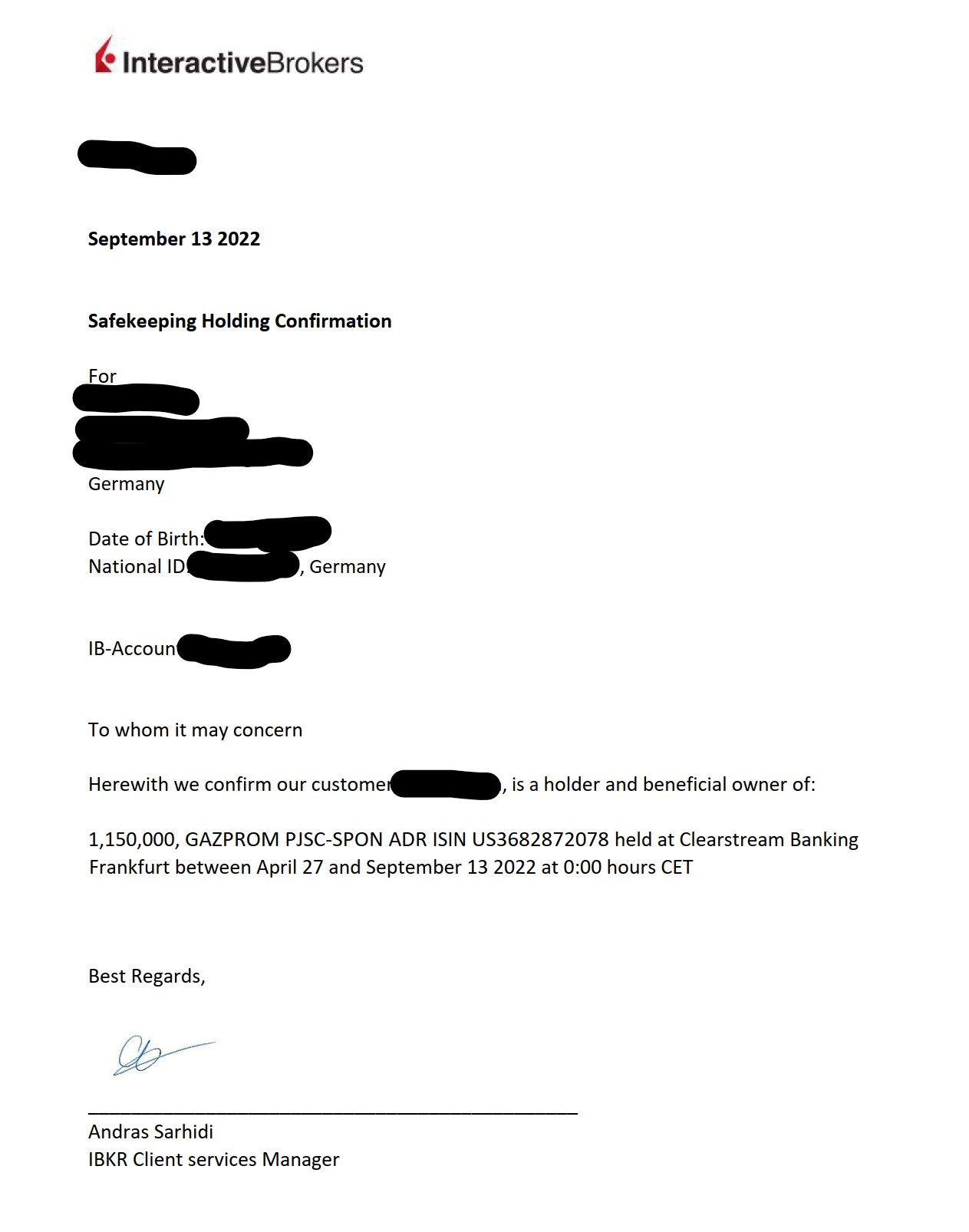 Ich frage mich nur, warum Clearstream am 09.08.2022 eine Meldung (D22051) herausgegeben