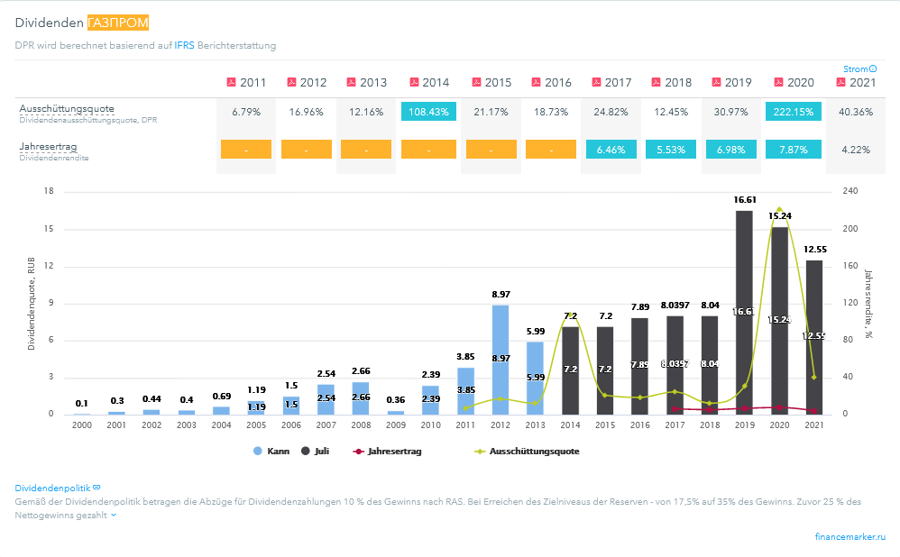 Das KGV liegt langfristig um die 4, was bei einem Gewinn von 64 Rubel einen rechnerischen Kurs von 256 Rubel ergibt.