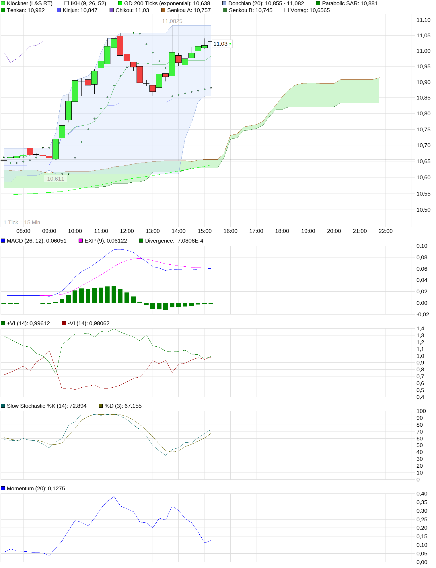 getestet werden! Die 200 Tageslinie verläuft bei 9,82 €, die 200 Tage Ticks bei 9,97 €! Diese (grün) hat jedoch die 200 Tage Linie (blau) von unten nach oben durchbrochen, und das ist ein bullisches Signal! Die grüne Linie weist bereits nach oben, die blaue dagegen marschiert noch leicht in Richtung Süden! Von einer echten und 'geschafften' Trendwende kann man erst reden, wenn diese ebenfalls klar nach Norden verläuft! ...
