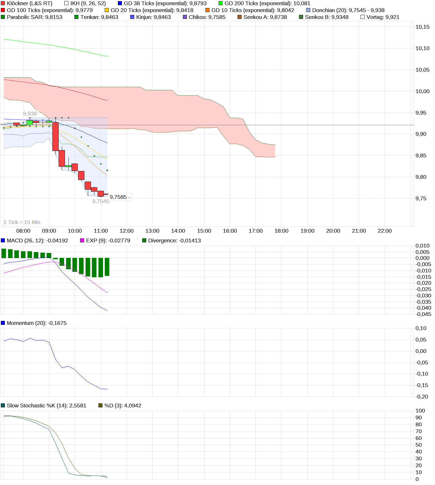 Der Markt konsolidiert generell leicht, das betrifft ein Papier ohne große Story (so wie Klöckner) nochmal besonders hart. Was dann eintrifft sind die typischen Stops die gesetzt wurden.
