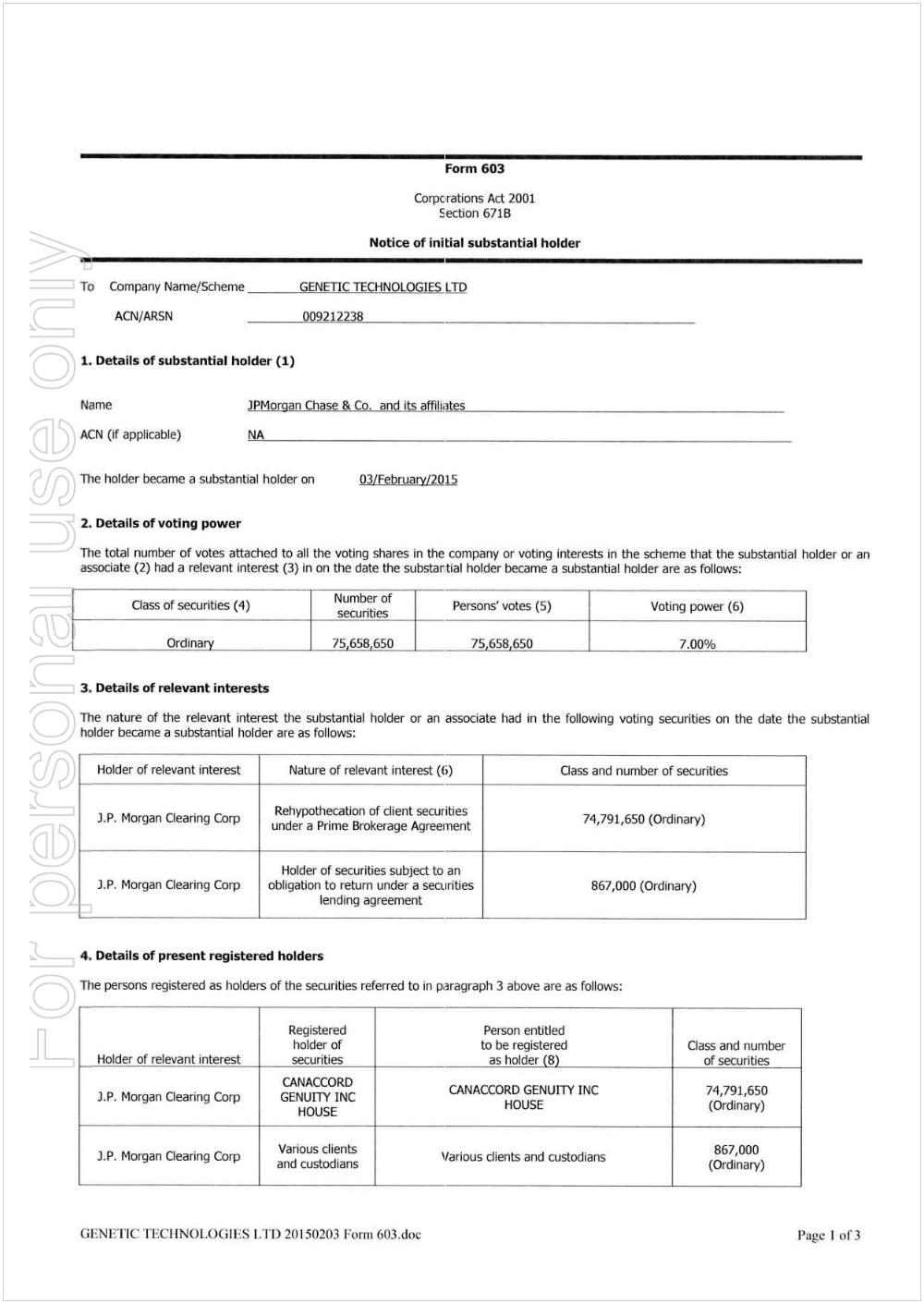 Company,” stated Dr. Paul MacLeman, CEO of Genetic Technologies. “Given the significant incidence