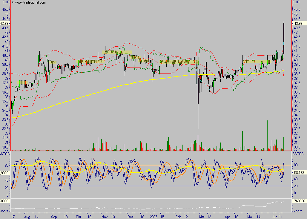 Meine Rechnung zum Wert der Gesco Aktie 36€ minus Gewinn/Aktie für das Fiskaljahr 2006/2007. Genau das ist der Wert der am Markt für die neuen Aktien erzielt wurde. Sehr enttäuschend für die Aktionäre.