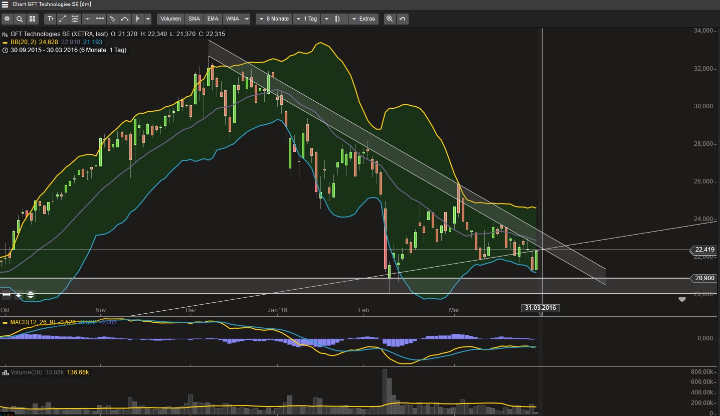 Kat, danke für den Chart. Ich hatte gehofft, dass Du auch nochmals darauf hinweist, dass GFT am Tag vor den Zahlen immer unter Druck gerät (unberechtigt).