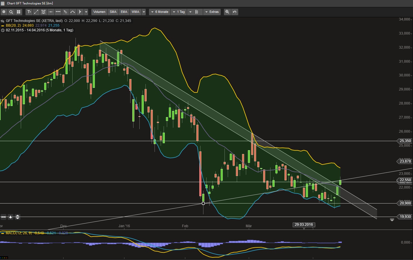 Wäre schön anschliessend den Abwärtstrend evtl. 1-2 mal von oben zu testen, nach oben ist eigentlich ordentlich Luft bis 23,50 & 25,XX nach unten steht die 20,90.