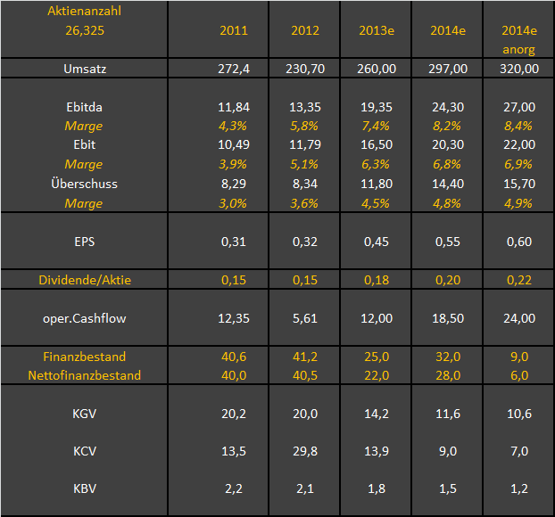 Das Ergebnis vor Zinsen und Steuern (EBIT) verbesserte sich um 47 Prozent auf 11,27 Mio. Euro (i. Vj. 7,65 Mio. Euro). Das Ergebnis vor Steuern (EBT) lag nach neun Monaten mit 11,21 Mio. Euro 44 Prozent über dem Vorjahreszeitraum (7,80 Mio. Euro). Die Umsatzrentabilität konnte mit einer Steigerung um 1,5 Prozentpunkte von 4,5 Prozent im Vorjahr auf 6,0 Prozent verbessert werden.