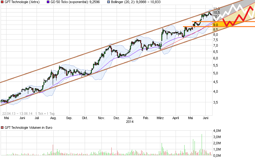 Da verläuft Ende nächster Woche der kurzfristige Aufwärtstrend und GD50 sowie das alte Verlaufshoch. Werde mich da mal wieder um Nachkäufe kümmern. :)