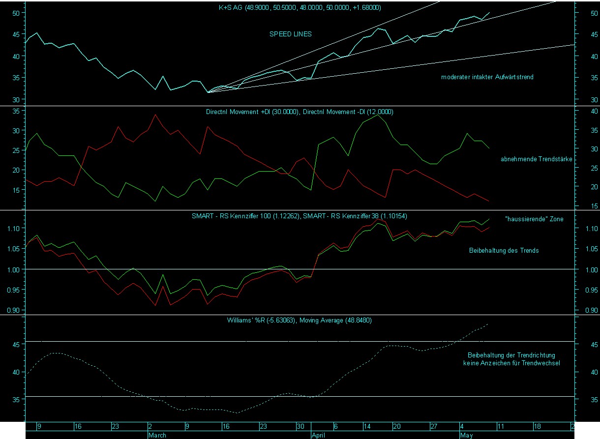 Dennoch sind die Barrieren im Gesamtmarkt noch vor uns (DAX mit 200 Tagelinie bei 4950 und Tendenz des übergeordneten Abwärtstrends bei 5300 Punkten).