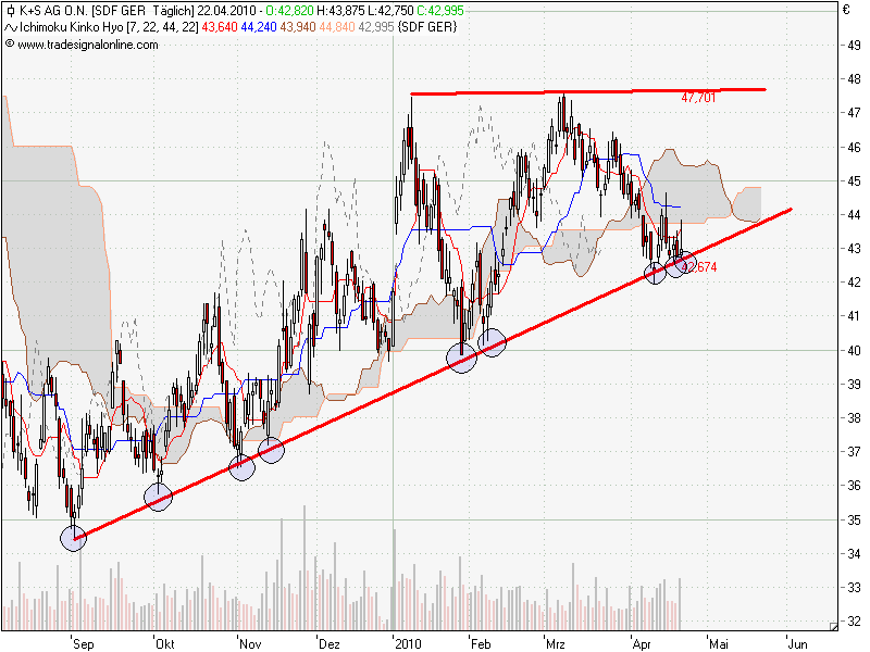 Die Frage ist, ob der eigentliche langfristige Aufwärtstrend bei K+S nun gebrochen wurde oder eben nicht! Außerdem wie sich der Gesamtmarkt in nächster Zeit verhalten wird!