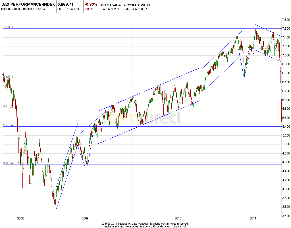 das wäre halt mal ein beginn eines kanals .. alles noch sehr wackelig weil wie du schon sagst nach unten hin nur einmal bestätigt bis jetzt . aber der würde 100% passen . trifft genau die tageshochs der kerzen 16.02.2011 und 02.05.2011 ...