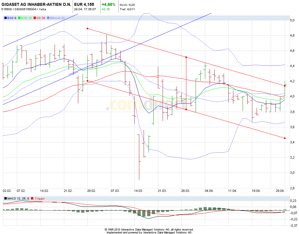 So mal sehen ob die 4,18 bei Gigaset hält, sprich ob wir den den Abwärtskanal seit Ende Feb. verlassen haben. Wenn ja könnte ich mir nen Anstieg bis zum oberen BB bei 4,40 vorstellen.