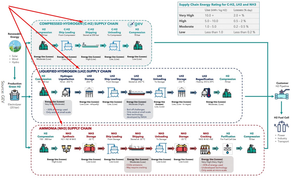 "Die C-H2-Lieferkette macht eine Speicherung vor Ort überflüssig, da das C-H2-Schiff selbst der Speicher ist", so Global Energy Ventures.