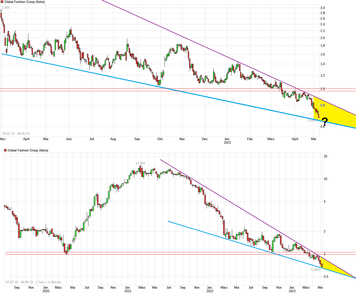Beide haben von Corona profitiert und leiden nun 2022/23 durch diese hohe Coronabasis, mit der sie verglichen werden, und müssen gleichzeitig mit den durch Inflation und Lieferkettenproblemen ausgelösten höheren Kosten klarkommen, Da das alles relativ plöätzlich kam, dauert es halt seine Zeit bis Kosten und Strukturen angepasst werden konnten. Gefühlt haben das andere ECommercer früher und konsequenter angepackt (siehe Westwing), aber irgendwo liegt da ja vielleicht die Chance bei fashionette und GFG. Hier betrachten alle nur die aktuell desaströsen Q1-Zahlen (auch zurecht), aber genau wie wir teilweise Mitte 2021 uns an den hohen Wachstumsraten berauschten und teilweise KUVs von 2-3 zahlten, sind vielleicht auch jetzt die KUVs unter 0,2 völlig negativ übertrieben und bieten wieder hohe Chancen. ABER immer vorausgesetzt die Manager der Konzerne machen vernünftige Arbeit und wir bekommen keine jahrelange Rezession. Eine kleinere Rezession (in Tiefe und Länge) sollten beide Unternehmen eigentlich abkönnen, wenn sie jetzt ja sowieso beginnen müssen Kosten zu senken und Strukturen auf den Prüfstand zu stellen.