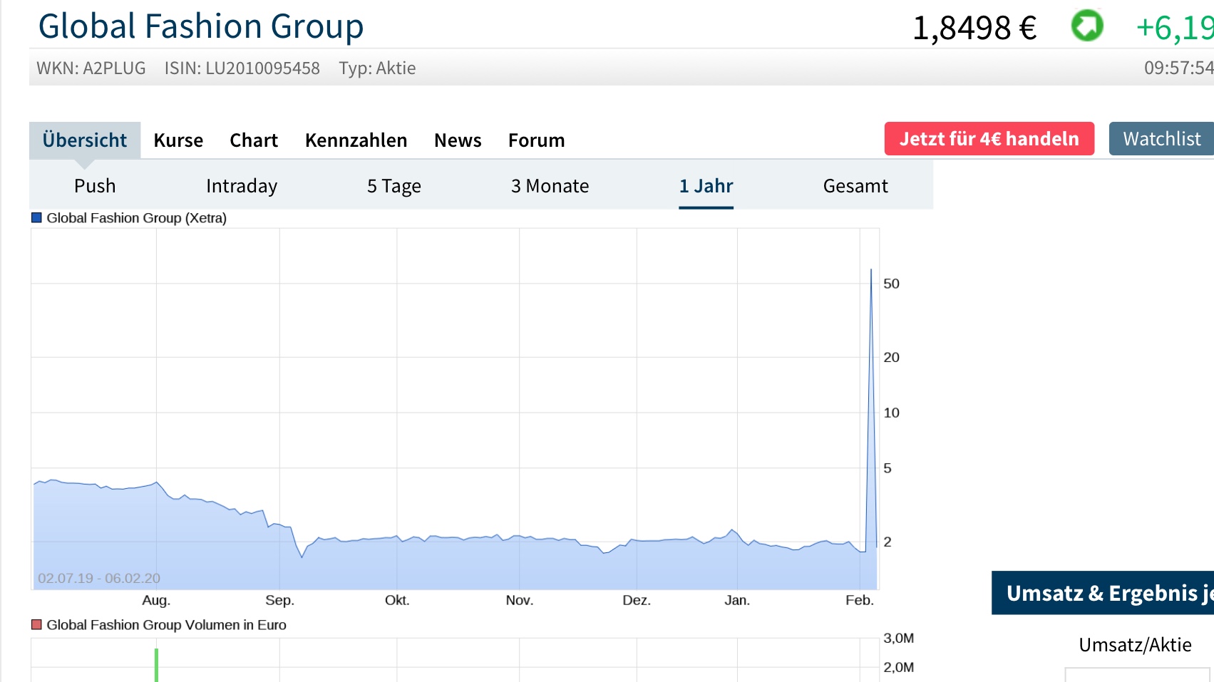 Ich finde nicht, dass die Aktie zu markteng ist. Mal davon abgesehen, dass das bei einem antizyklischem Investment doch völlig egal ist. Es sei denn, du willst traden/zocken. Und wenn du 5% deines Wikis mit GFG bestücken würdest, sind das gerade mal 30T €. … Aber gut, ich würde eh nicht wollen, dass du hier einsteigst. Unsere wikis ähneln sich ja ohnehin oft, nur das du dann stark hebelst. Deshalb ja meine Verwunderung, wieso du hier im Thread mehrmals auftauchst, wenn du nicht investieren willst.