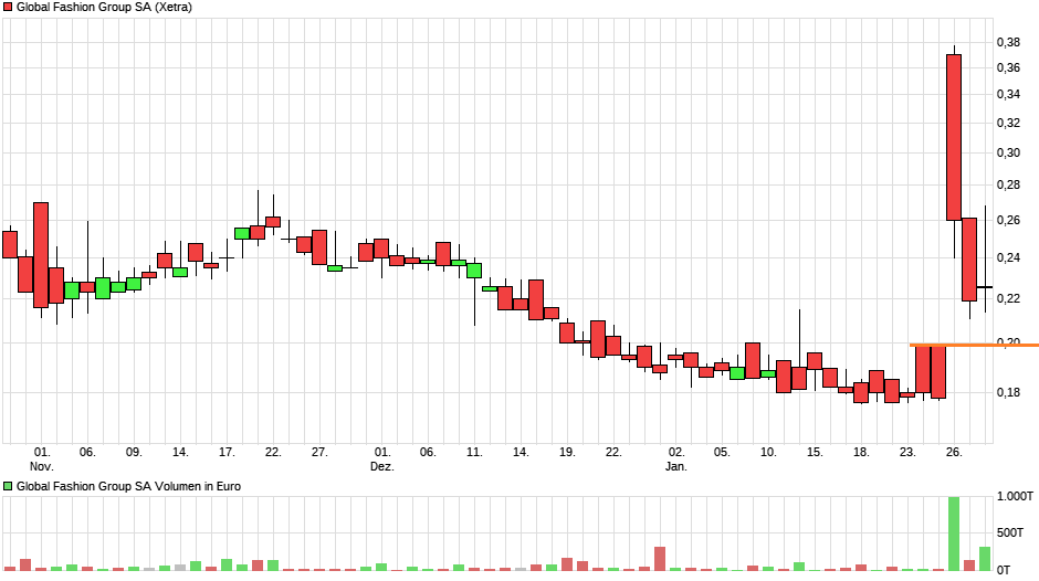 Was den Chart anbelangt noch ein Gedanke. Es scheint als wäre die Aktie heute an die obere Kante des Bollinger Bandes gelaufen. Der GD38 stand dort auch im Weg. Nun bewegt sich die Aktie wieder in der Mitte des Bandes. Es ergeben sich für mich drei Szenarien: 1) weiterer Rücklauf und Gap-Close mit anschließendem stetigen Anstieg auf etwa 0,5€ 2) langsamer aber sicherer Anstieg in Richtung 0,5€ 3) es läuft weiterhin wirtschaftlich unglaublich schlecht und das Businessupdate ist strategisch nicht überzeugend --> Kurs zerfällt weiter und preist Insolvenz immer stärker ein