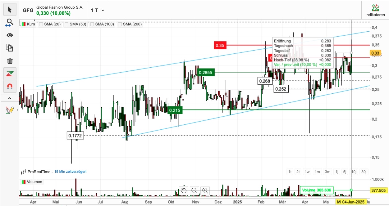 stehen wir Ende Juli zwischen 28 und 45 Cents.